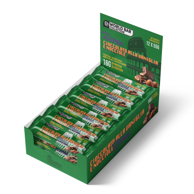 La edición Roma de World Bar Collection rinde homenaje a la tradición repostera italiana con sabor **Cioccolato alla Vaniglia e Nocciole. **Una combinación equilibrada entre cacao, vainilla suave y el toque delicado de la avellana. Cada barrita aporta 16 g de proteína, convirtiéndose en una opción deliciosa y práctica para disfrutar en cualquier momento del día.