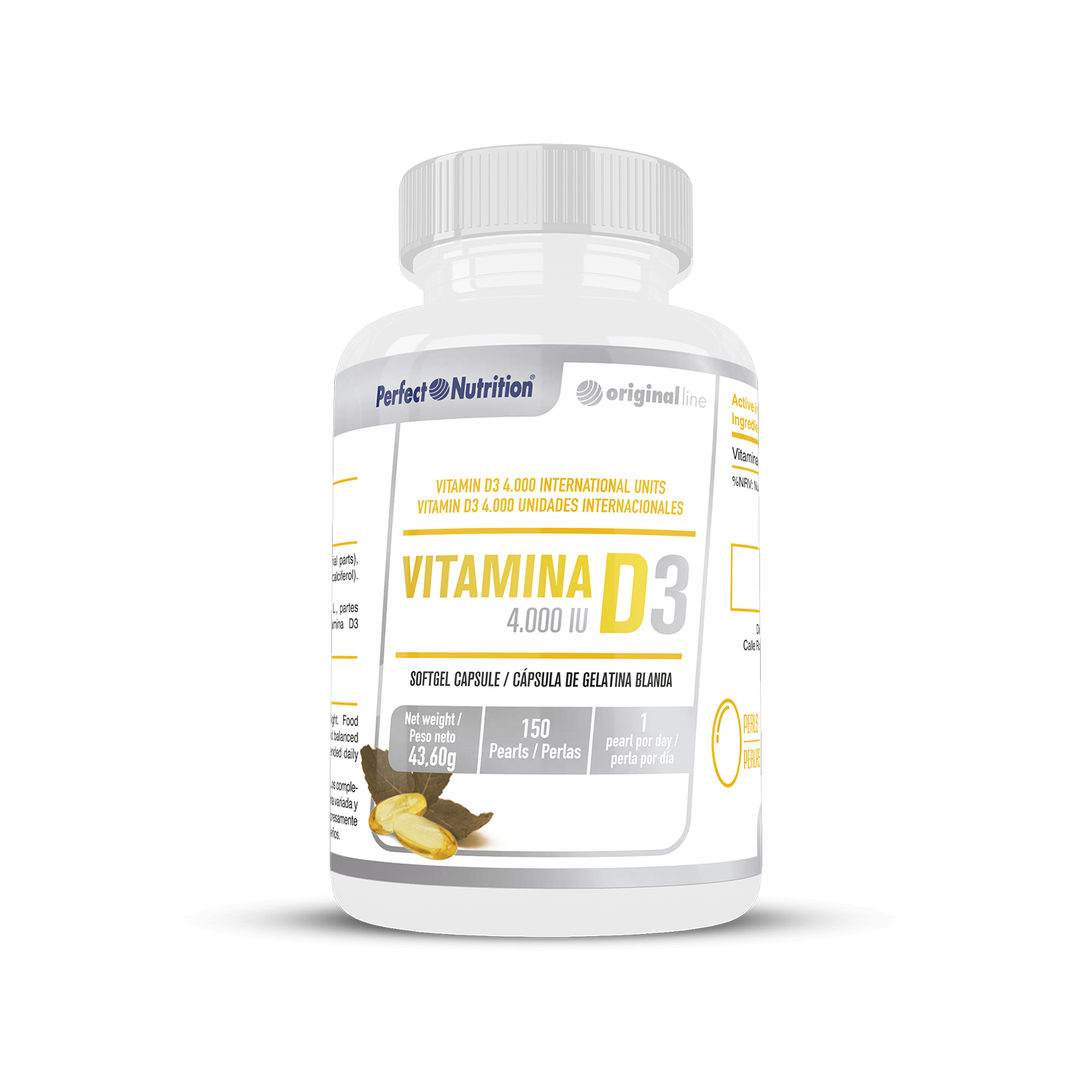 ComprarVitamin D3 de Perfect Nutrition es el complemento ideal para mantener tu salud ósea, muscular e inmunológica en óptimas condiciones. Con 4.000 UI de vitamina D3 por perla, ofrece una dosis efectiva para prevenir déficits cada vez más comunes, especialmente en países con baja exposición solar.