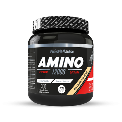 AMINO 12000 es un suplemento de Perfect Nutrition a base de aminoácidos procedentes de la proteína concentrada de suero de leche en tabletas masticables.