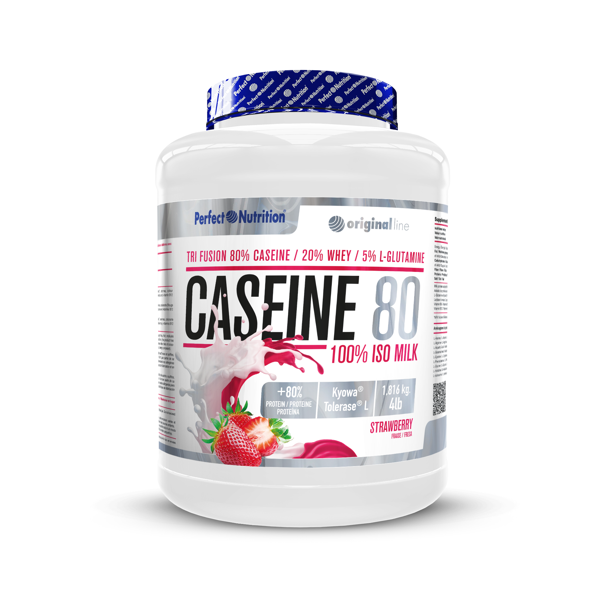 ComprarCaseine 80 de Perfect Nutrition es una de las mejores proteínas de caseína disponibles en el mercado. Su fórmula avanzada sustituye el MPC concentrado por MPI aislado de proteína de leche al 90%, lo que se traduce en una composición de 80% caseína y 20% suero de leche. Además, incorpora un 5% de Glutamina Kiowa®, un componente clave para la recuperación muscular y el fortalecimiento del sistema inmunológico.