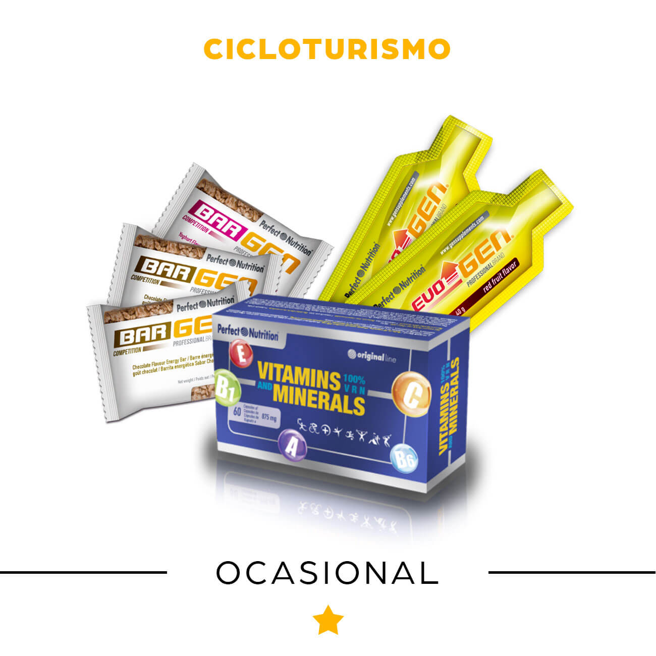 Para ciclistas ocasionales que hacen deporte en momentos determinados del año y que lo hacen por diversión o para llevar un estilo de vida sana y equilibrada. En el pack se incluye el asesoramiento de cómo tomar los suplementos y una idea aproximada de cómo llevar una alimentación sana y equilibrada.