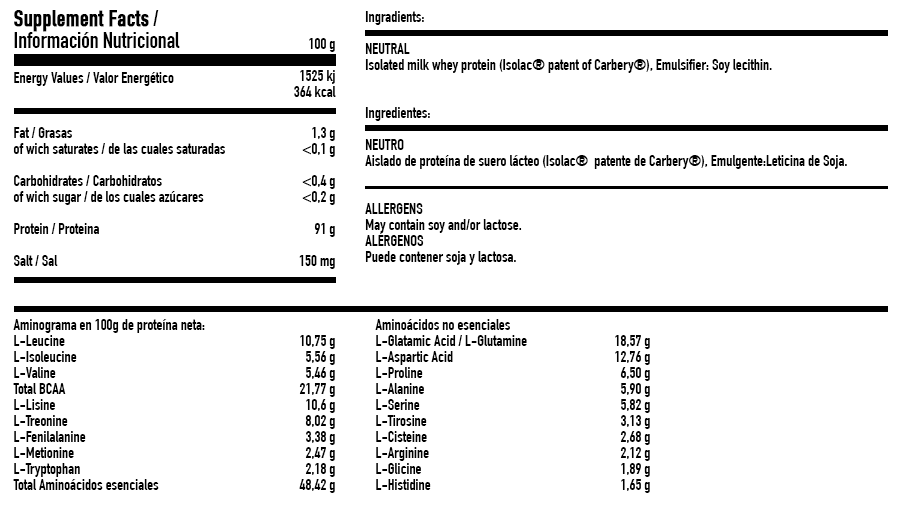 ISOwhey 100 de Original Line es de rápida asimilación, digestibilidad y contiene un alto valor biológico que puede ser utilizado después de los entrenamientos para la recuperación muscular en deportes de potencia y resistencia, como Fútbol, Atletismo, Triatlón, Ciclismo, Tenis y en dietas extremas de competición en deportes relacionados con la musculación. ISOwhey 100 de Perfect Nutrition es un aislado de suero puro desarrollado para garantizar su mejor absorción ayudando al máximo el proceso digestivo, es una proteína pre-digerida por procesos mecánicos que aceleran su absorción, acción, asimilación y digestión, garantizando la total biodisponibilidad de la misma para conseguir de forma más rápida tus objetivos, ya sea aumentar tu masa muscular, una buena recuperación post entreno, etc. Formulada con sabor neutro ofrece la máxima pureza, porque si añadimos sabores al producto, la cantidad de proteína disminuye entre un 3% y un 5% dependiendo del sabor. Con sabor neutro garantizamos el porcentaje más alto en proteína del producto quedando a un excelente 91%. ISOwhey 100 de Original Line te ayudará en dietas indicadas para la pérdida de peso, su nulo porcentaje en grasas e hidratos de carbono lo convierte en el mejor suplemento de proteínas para aquellos y aquellas que estén siguiendo una dieta extrema de competición.